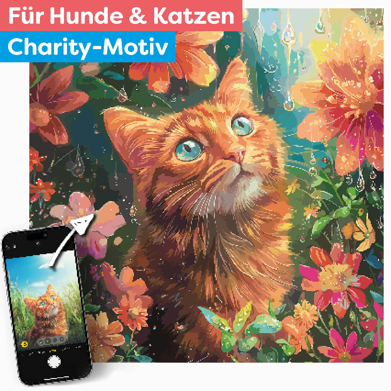 Dieses Malen-nach-Zahlen-Motiv zeigt deine Katze oder deinen Hund in einer lebendigen, blumenreichen Szene, inspiriert vom Thema „Wasser als Lebensquelle“. Dieses Motiv ist ideal für Naturliebhaber und Fans abstrakter Kunst. Das Besondere: 50 % des Gewinns aus diesem Motiv spendet Malreise an die NGO well:fair, für sauberes Trinkwasser und Hygieneprojekte in Ostafrika. Lade ein passendes Foto deines Hundes oder deiner Katze hoch – am besten mit frontalem Blick – und wir integrieren dein Haustier perfekt in diese einzigartige Szenerie.